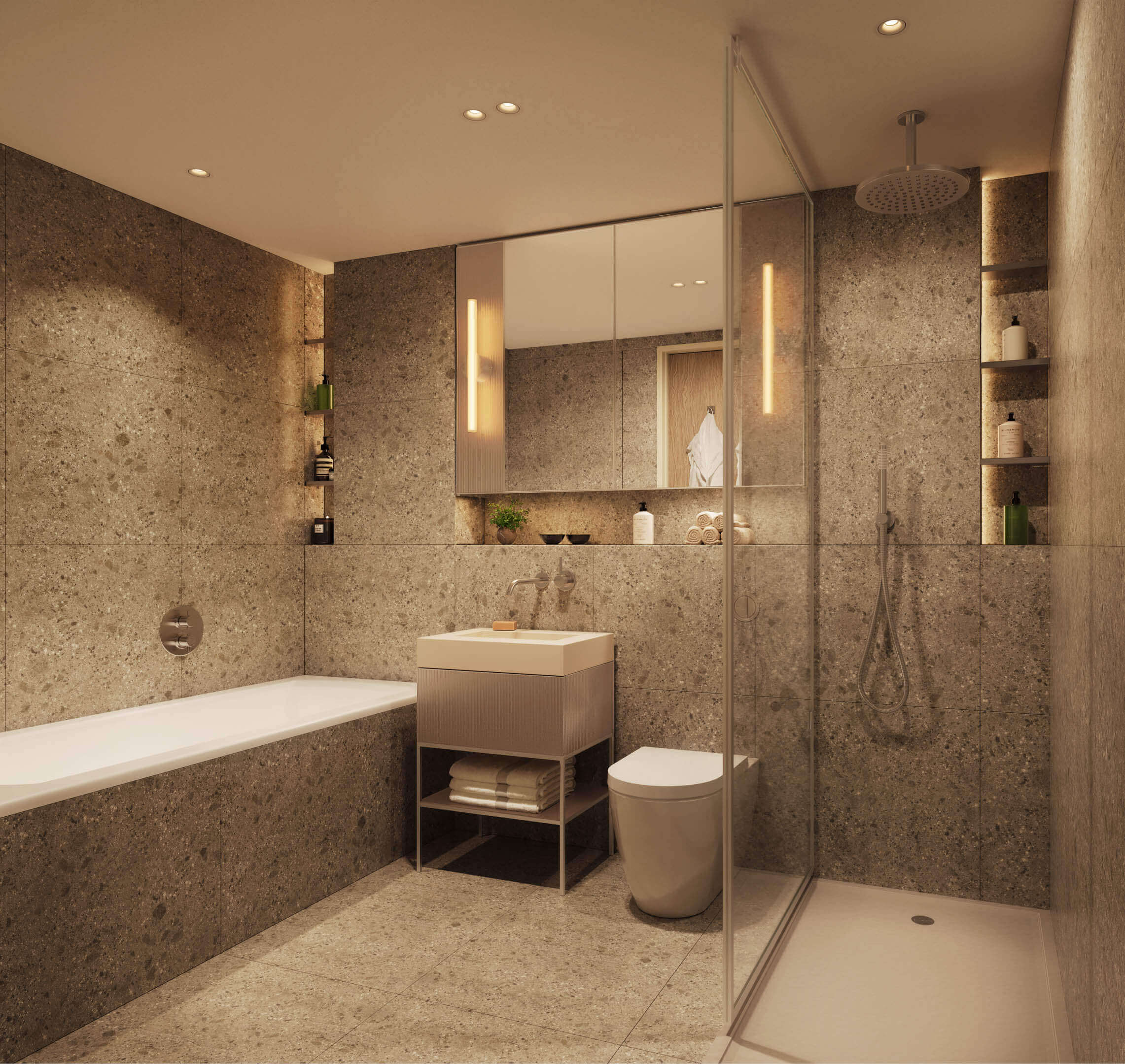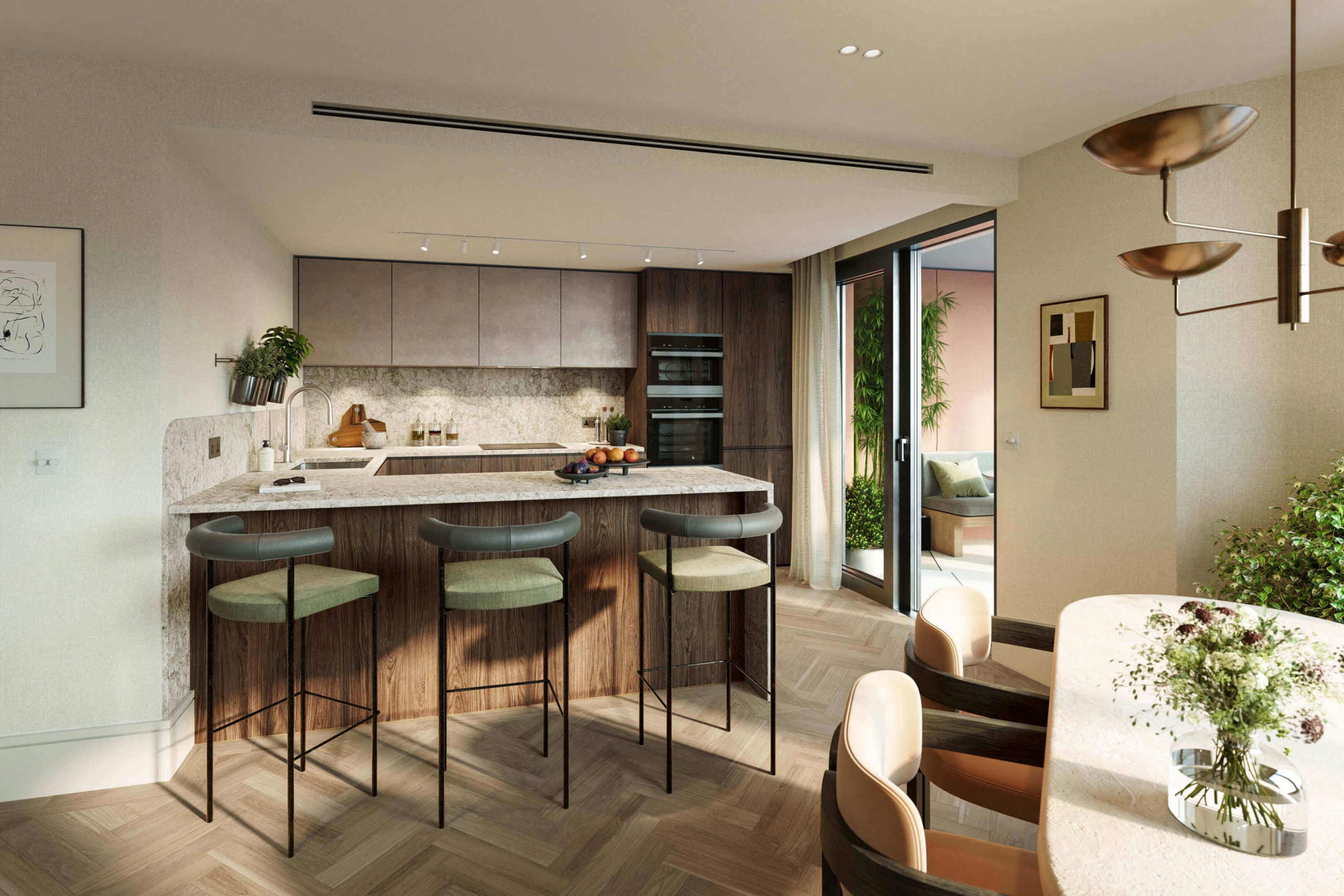 Projede yer alan daireler; ferah açık plan iç tasarımlar, yüksek kaliteli malzemeler, entegre ankastre mutfaklar ve modern banyolar ile konforlu ve fonksiyonel bir yaşam alanı sunacak şekilde tasarlanmıştır. Birçok dairede bulunan private balconies or terraces, iç mekânları açık hava ile buluşturarak sakinlere keyifli bir yaşam deneyimi sağlar.